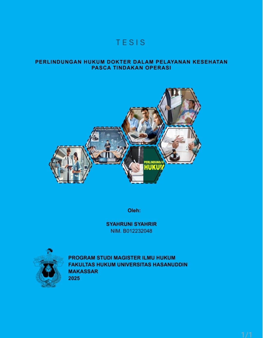 SYAHRIR, SYAHRUNI (2026) Perlindungan hukum dokter dalam pelayanan kesehatan pasca tindakan operasi = Legal protection for doctors in post surgery health service. Thesis thesis, UNIVERSITAS HASANUDDIN MAKASSAR.