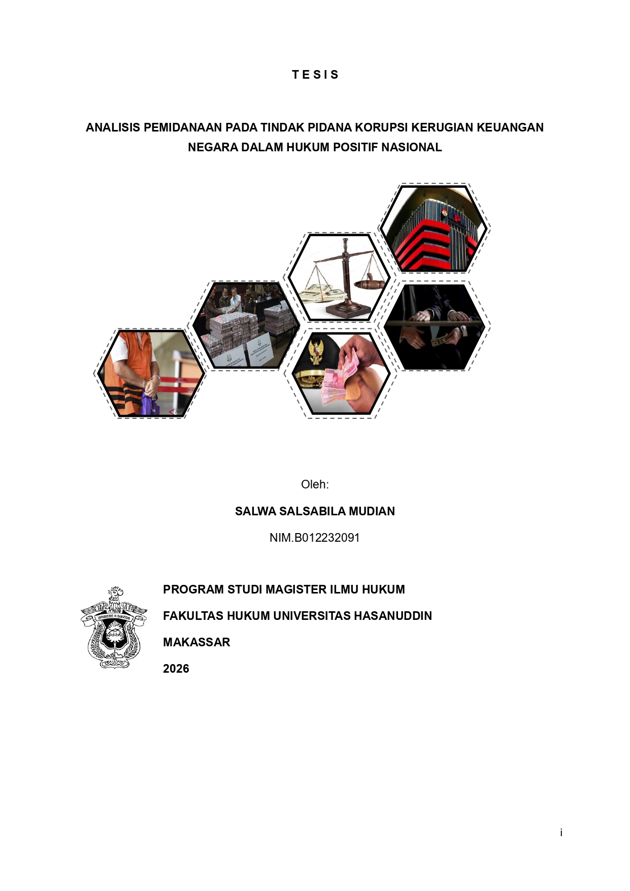 MUDIAN, SALWA SALSABILA (2026) ANALISIS PEMIDANAAN PADA TINDAK PIDANA KORUPSI KERUGIAN KEUANGAN NEGARA DALAM HUKUM POSITIF NASIONAL = Analysis of Punishment for Corruption Crimes Causing Financial Loss to the State in National Positive Law. Skripsi thesis, UNIVERSITAS HASANUDDIN MAKASSAR.
