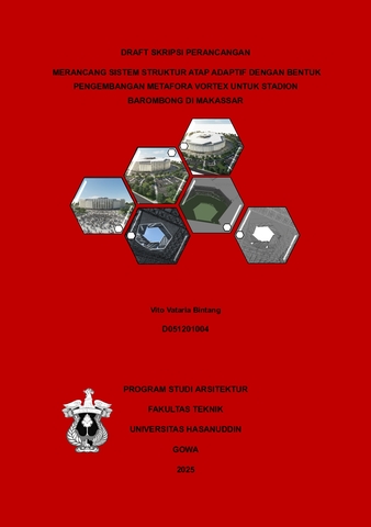 BINTANG, VITO VATARIA (2026) Merancang Sistem Struktur Atap Adaptif Dengan Bentuk Pengembangan Metafora Vortex Untuk Stadion Baromong Di Makassar = Designing an Adaptive Roof Structural System with a Vortex Metaphor Development Form for the Baromong Stadium in Makassar. Skripsi thesis, Universitas Hasanuddin.