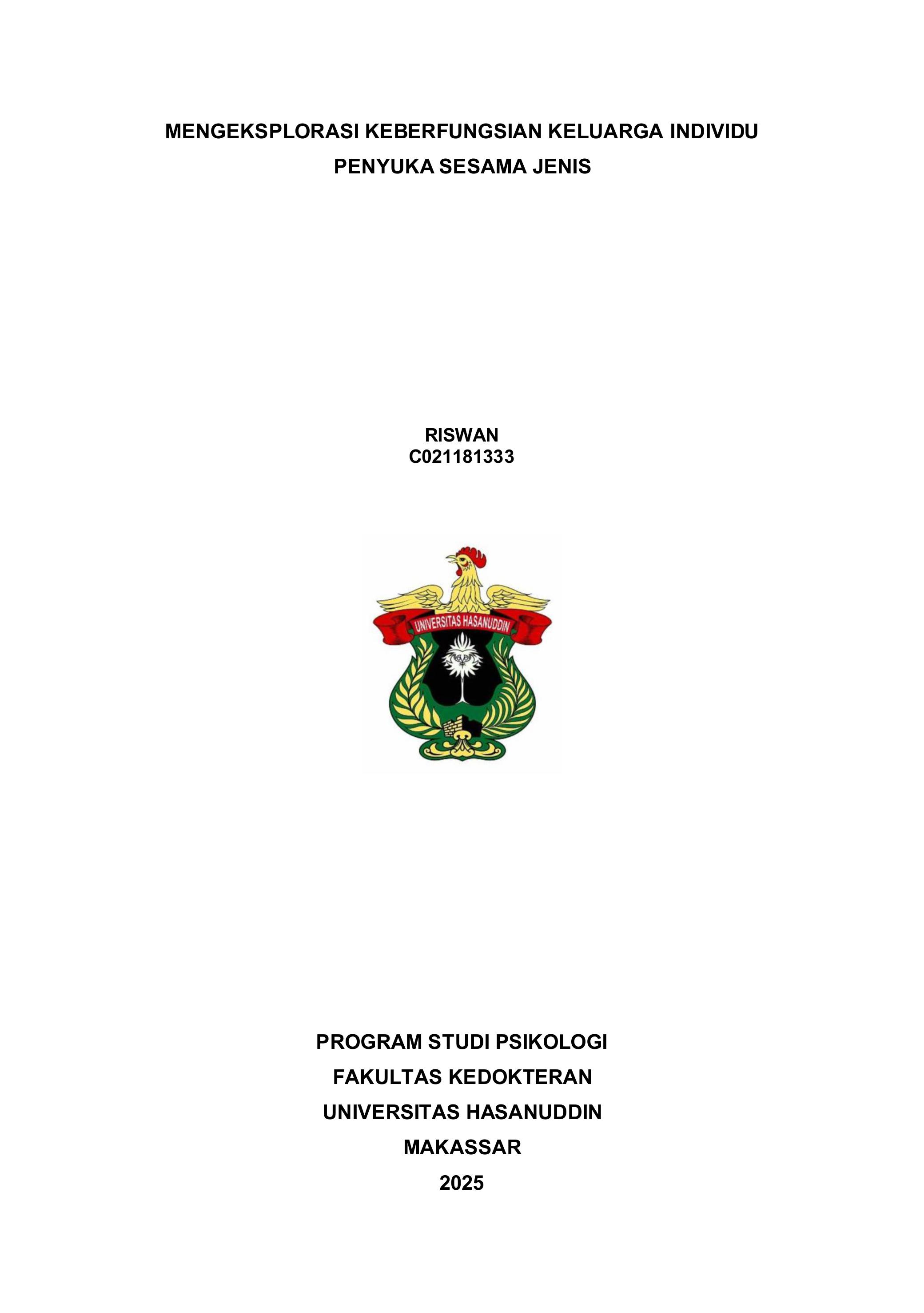 RISWAN, RISWAN (2025) Mengeksplorasi Keberfungsian Keluarga Individu Penyuka Sesama Jenis = Exploring Family Functioning in Same-Sex Attracted Individuals. Skripsi thesis, Universitas Hasanuddin.