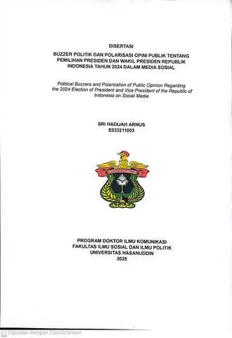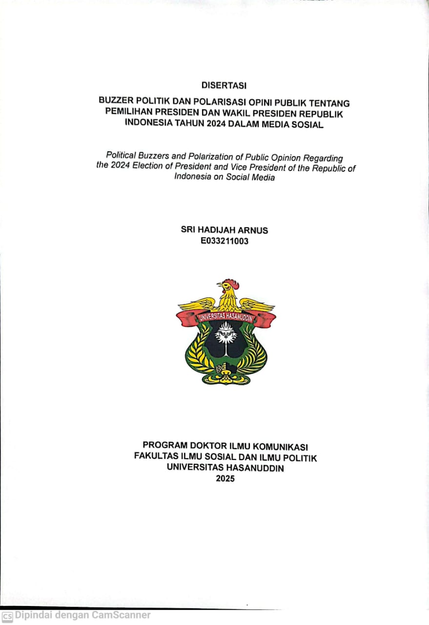 ARNUS, SRI HADIJAH (2025) Buzzer Politik dan Polarisasi Opini Publik tentang pemilihan presiden dan wakil presiden republik indonesia tahun2024 dalam media sosial = Political buzzer and polarization of public opinion regarding the 2024 election of president and vice president of the republic of indonesia on social media. Disertasi thesis, UNIVERSITAS HASANUDDIN.