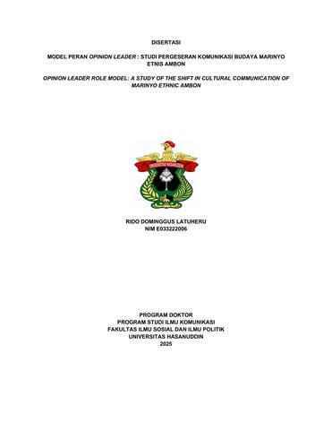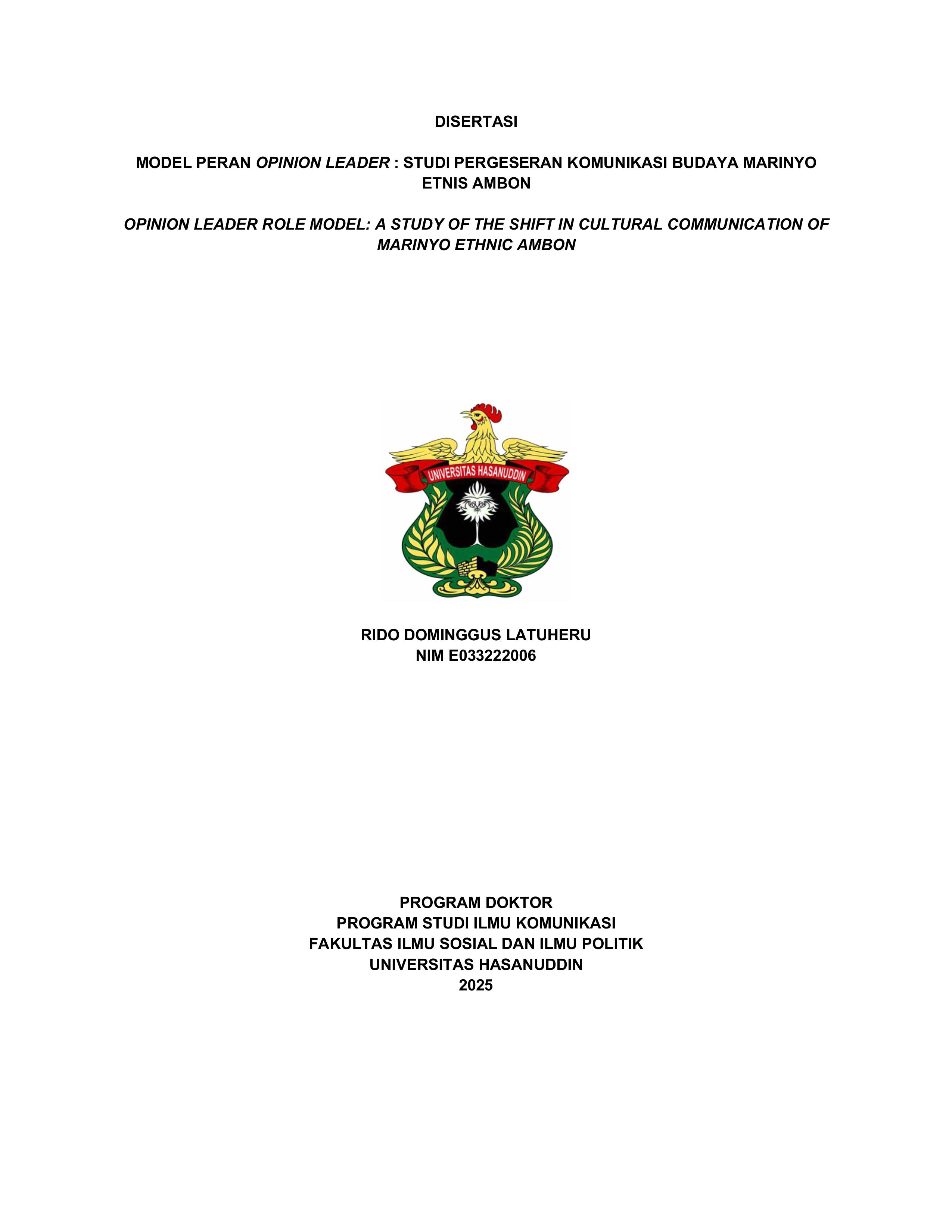 LATUHERU, RIDO DOMINGGUS (2025) MODEL PERAN OPINION LEADER : STUDI PERGESERAN KOMUNIKASI BUDAYA MARINYO ETNIS AMBON = OPINION LEADER ROLE MODEL: A STUDY OF THE SHIFT IN CULTURAL COMMUNICATION OF MARINYO ETHNIC AMBON. Disertasi thesis, UNIVERSITAS HASANUDDIN.