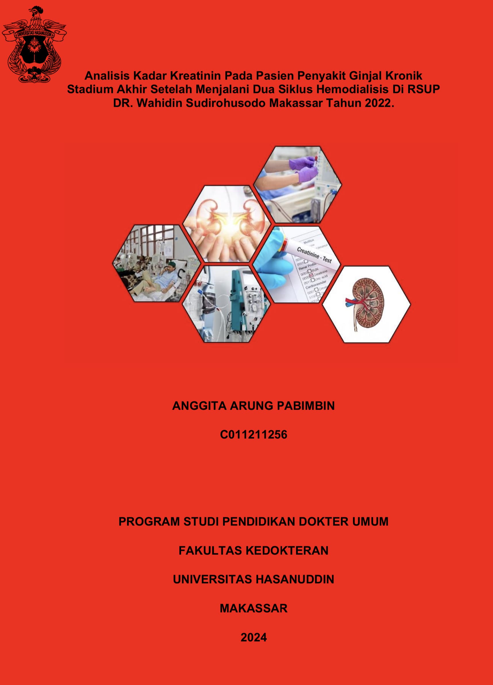 PABIMBIN, ANGGITA ARUNG (2024) ANALISIS KADAR KREATININ PADA PASIEN PENYAKIT GINJAL KRONIK STADIUM AKHIR SETELAH MENJALANI DUA SIKLUS HEMODIALISIS DI RSUP DR. WAHIDIN SUDIROHUSODO MAKASSAR TAHUN 2022 = ANALYSIS OF CREATININE LEVELS IN PATIENTS WITH END STAGE CHRONIC KIDNEY DISEASE AFTER UNDERGOING TWO CYCLES OF HEMODIALYSIS AT RSUP DR. WAHIDIN SUDIROHUSODO MAKASSAR IN 2022. Skripsi thesis, Universitas Hasanuddin.