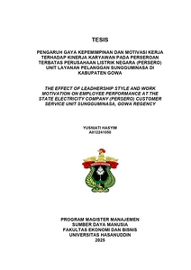 PENGARUH GAYA KEPEMIMPINAN DAN MOTIVASI KERJA TERHADAP KINERJA KARYAWAN PADA PERSEROAN TERBATAS PERUSAHAAN LISTRIK NEGARA (PERSERO) UNIT LAYANAN PELANGGAN SUNGGUMINASA DI KABUPATEN GOWA = THE EFFECT OF LEADHERSHIP STYLE AND WORK MOTIVATION ON EMPLOYEE PERFORMANCE AT THE STATE ELECTRICITY COMPANY (PERSERO) CUSTOMER SERVICE UNIT SUNGGUMINASA, GOWA REGENCY