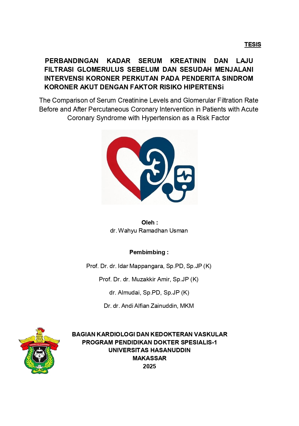 USMAN, WAHYU RAMADHAN (2025) Perbandingan Kadar Serum Kreatinin dan Laju Filtrasi Glomerulus Sebelum dan Sesudah Menjalani Intervensi Koroner Perkutan pada Penderita Sindrom Koroner Akut dengan Faktor Risiko Hipertensi = The Comparison of Serum Creatinine Levels and Glomerular Filtration Rate Before and After Percutaneous Coronary Intervention in Patients with Acute Coronary Syndrome with Hypertension as a Risk Factor. Skripsi thesis, Universitas Hasanuddin.