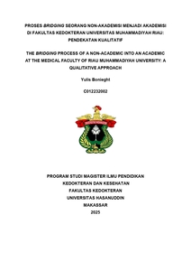 BONIEGHT, YULIS (2025) PROSES BRIDGING SEORANG NON-AKADEMISI MENJADI AKADEMISI DI FAKULTAS KEDOKTERAN UNIVERSITAS MUHAMMADIYAH RIAU: PENDEKATAN KUALITATIF = THE BRIDGING PROCESS OF A NON-ACADEMIC INTO AN ACADEMIC AT THE MEDICAL FACULTY OF RIAU MUHAMMADIYAH UNIVERSITY: A QUALITATIVE APPROACH. Thesis thesis, Universitas Hasanuddin.