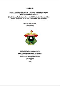 JULIANI, INAYAH EKA (2026) PENGARUH PENGGUNAAN APLIKASI GRAB TERHADAP KEPUTUSAN KONSUMEN ( STUDI KASUS PADA MAHASISWA AKTIF S1 FAKULTAS EKONOMI DAN BISNIS ANGKATAN 2022-2024 UNIVERSITAS HASANUDDIN) = THE EFFECT OF GRAB APPLICATION USE ON CONSUMER DECISIONS (CASE STUDY OF ACTIVE BACHELOR STUDENTS OF THE FACULTY OF ECONOMICS AND BUSINESS, CLASS 2022-2024, HASANUDDIN UNIVERSITY). Skripsi thesis, Universitas Hasanuddin.