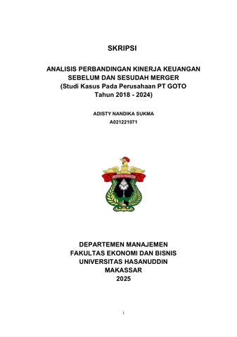 SUKMA, ADISTY NANDIKA (2025) ANALISIS PERBANDINGAN KINERJA KEUANGAN SEBELUM DAN SESUDAH MERGER (Studi Kasus Pada Perusahaan PT GOTO Tahun 2018 - 2024) = ANALYSIS OF FINANCIAL PERFORMANCE COMPARISON BEFORE AND AFTER MERGER (Case Study on PT GOTO for the Period 2018 – 2024). Skripsi thesis, Universitas Hasanuddin.