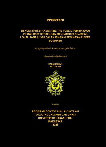 USMAN, HALIM (2026) DEKONSTRUKSI AKUNTABILITAS PUBLIK PEMBIAYAAN INFRASTRUKTUR DENGAN MENGADOPSI KEARIFAN LOKAL TANA LUWU DALAM BINGKAI PEMIKIRAN PIERRE BOURDIEU = DECONSTRUCTING PUBLIC ACCOUNTABILITY IN INFRASTRUCTURE FINANCING THROUGH THE INTEGRATION OF TANA LUWU’S LOCAL WISDOM WITHIN PIERRE BOURDIEU’S THEORETICAL FRAMEWORK. Disertasi thesis, Universitas Hasanuddin.