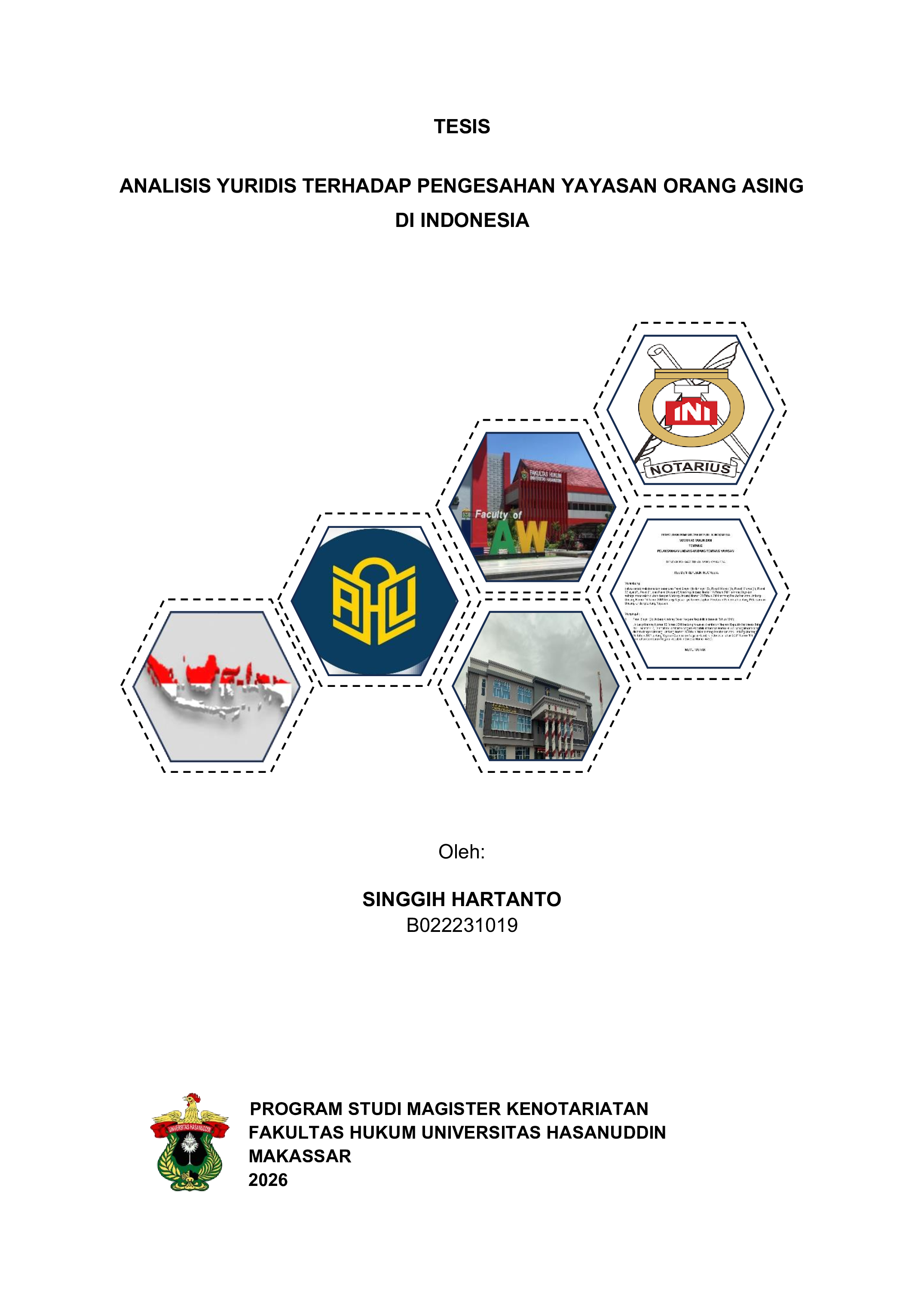 HARTANTO, SINGGIH (2026) Analisis Yuridis Terhadap Pengesahan Yayasan Orang Asing di Indonesia = Legal Analysis of the Legalisation of Foreign Foundations in Indonesia. Thesis thesis, UNIVERSITAS HASANUDDIN MAKASSAR.