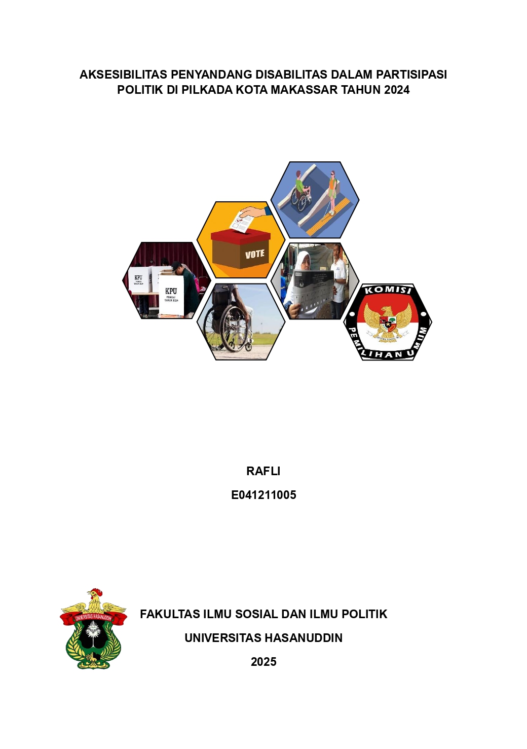 RAFLI, RAFLI (2025) AKSESIBILITAS PENYANDANG DISABILITAS DALAM PARTISIPASI POLITIK DI PILKADA KOTA MAKASSAR TAHUN 2024 = ACCESSIBILITY FOR PEOPLE WITH DISABILITIES IN POLITICAL PARTICIPATION IN THE 2024 MAKASSAR CITY ELECTIONS. Skripsi thesis, Universitas Hasanuddin.