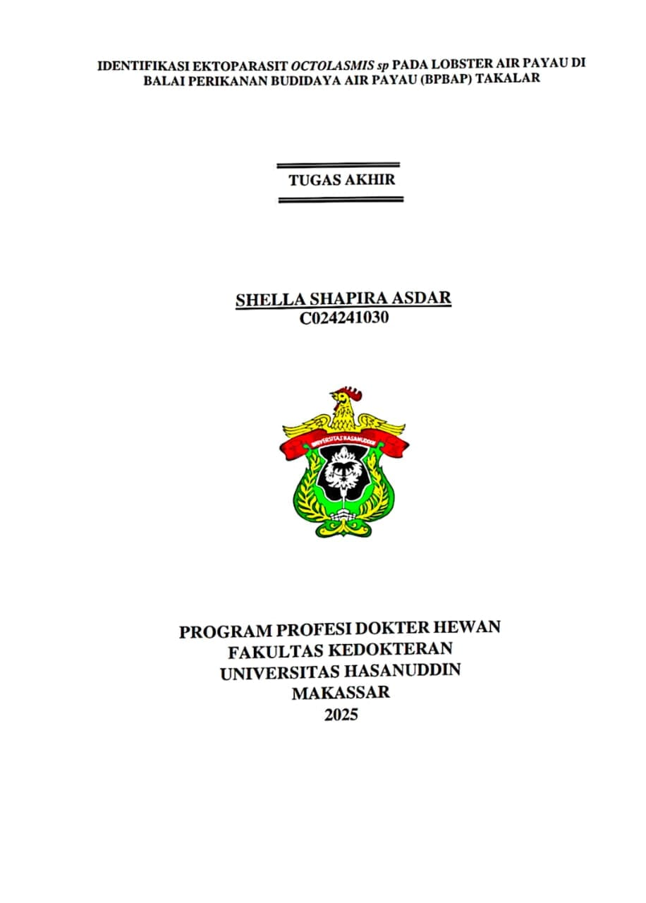 ASDAR, SHELLA SHAPIRA (2026) IDENTIFIKASI EKTOPARASIT OCTOLASMIS sp PADA LOBSTER AIR PAYAU DI BALAI PERIKANAN BUDIDAYA AIR PAYAU (BPBAP) TAKALAR = Identification of Ectoparasite Octolasmis sp. on Brackish Water Lobsters at the Brackish Water Aquaculture Center (BPBAP) Takalar. Skripsi thesis, Universitas Hasanuddin.