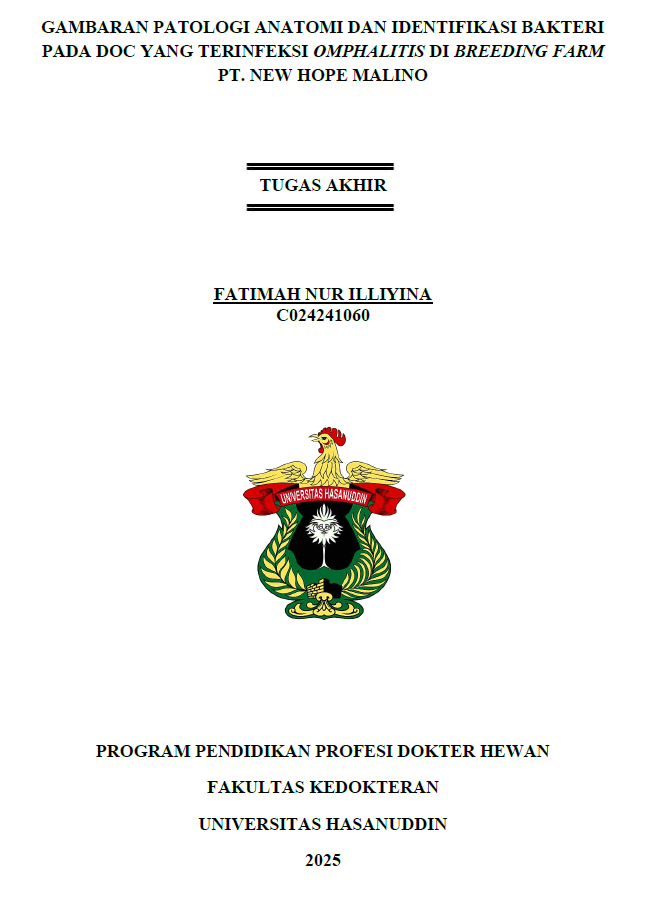 ILLIYINA, FATIMAH NUR (2025) Gambaran Patologi Anatomi dan Identifikasi Bakteri Pada DOC Yang Terinfeksi Omphalitis Di Breeding Farm PT. New Hope Malino = Anatomical Pathology and Bacterial Identification in DOC Infected with Omphalitis at Breeding Farm PT. New Hope Malino: A Case Report. Skripsi thesis, Universitas Hasanuddin.