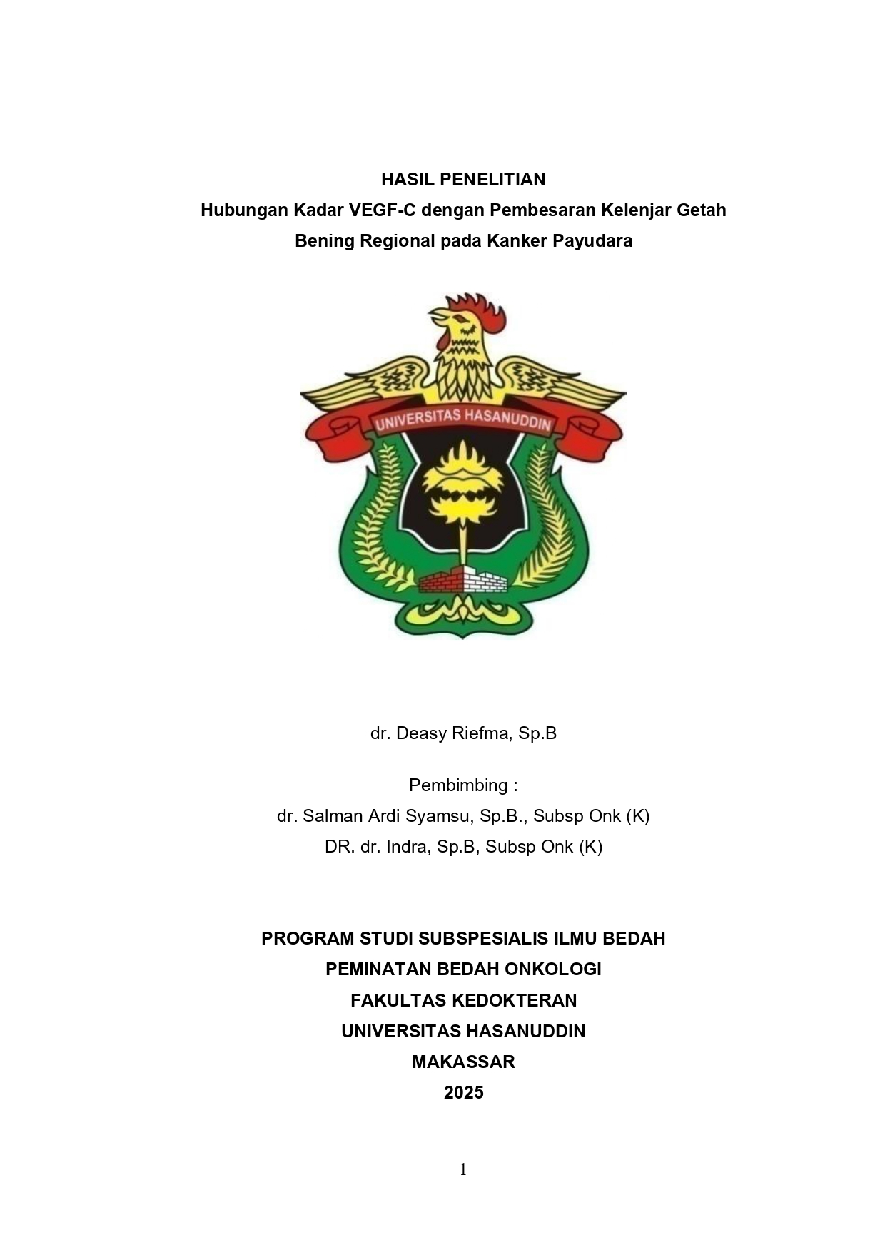 RIEFMA, DEASY (2026) Hubungan Kadar VEGF-C dengan Pembesaran Kelenjar Getah Bening Regional pada Kanker Payudara = Hubungan Kadar VEGF-C dengan Pembesaran Kelenjar Getah Bening Regional pada Kanker Payudara. Skripsi thesis, Universitas Hasanuddin.