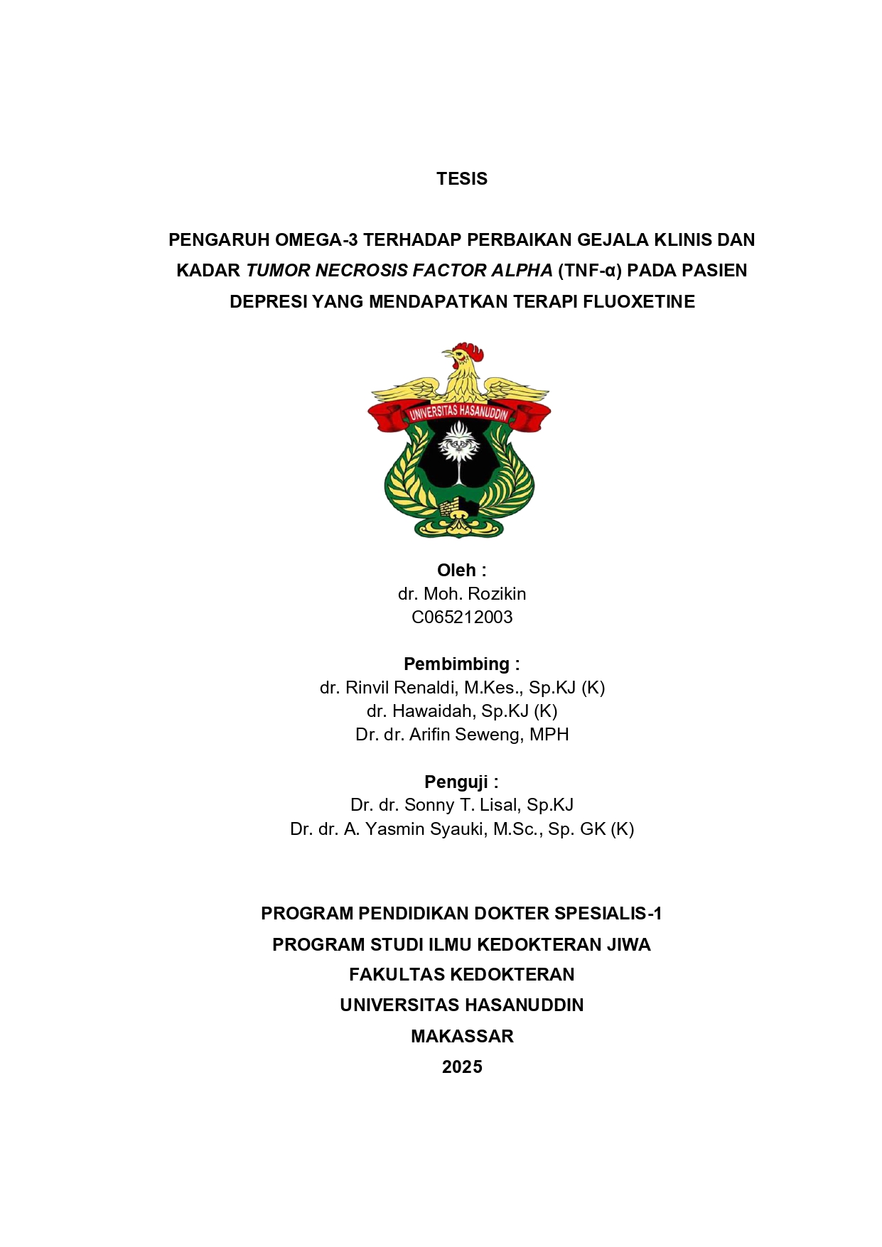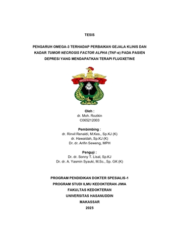 ROZIKIN, MOH (2027) PENGARUH OMEGA-3 TERHADAP PERBAIKAN GEJALA KLINIS DAN KADAR TUMOR NECROSIS FACTOR ALPHA (TNF-α) PADA PASIEN DEPRESI YANG MENDAPATKAN TERAPI FLUOXETINE = The Effect of Omega-3 on Clinical Symptom Improvement and Tumor Necrosis Factor-Alpha (TNF-α) Levels in Depressed Patients Receiving Fluoxetine Therapy. Thesis thesis, Universitas Hasanuddin.