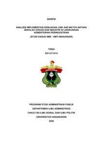 TISNA, TISNA (2026) Analisis Implementasi Kebijakan Link and Match antara Sekolah Vokasi dan Industri di Lingkungan Kementerian Perindustrian (Studi Kasus SMK - SMTI Makassar)) = Analysis of the Link and Match Policy between Vocational Schools and Industry Within the Ministry of Industry (Case Study of SMK - SMTI Makassar). Skripsi thesis, Universitas Hasanuddin.