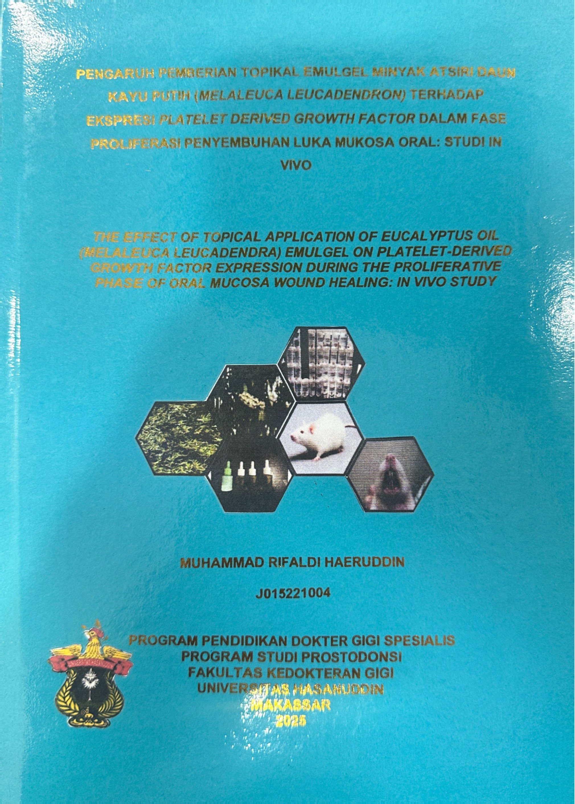 Haeruddin, MUH. RIFALDI (2025) PENGARUH PEMBERIAN TOPIKAL EMULGEL MINYAK ATSIRI DAUN KAYU PUTIH (MELALEUCA LEUCADENDRON) TERHADAP EKSPRESI PLATELET DERIVED GROWTH FACTOR DALAM FASE PROLIFERASI PENYEMBUHAN LUKA MUKOSA ORAL: STUDI IN VIVO = THE EFFECT OF TOPICAL APPLICATION OF EUCALYPTUS OIL (MELALEUCA LEUCADENDRA) EMULGEL ON PLATELET-DERIVED GROWTH FACTOR EXPRESSION DURING THE PROLIFERATIVE PHASE OF ORAL MUCOSA WOUND HEALING: IN VIVO STUDY. Skripsi thesis, Universitas Hasanuddin.