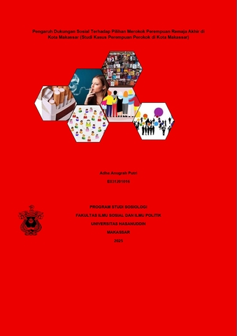 PUTRI, ADHA ANUGRAH (2025) Pengaruh Dukungan Sosial Terhadap Pilihan Merokok Perempuan Remaja Akhir di Kota Makassar (Studi Kasus Perempuan Perokok di Kota Makassar) = The Influence of Social Support on Smoking Choices among Late Adolescent Females in Makassar City (A Case Study of Female Smokers in Makassar City). Skripsi thesis, Universitas Hasanuddin.