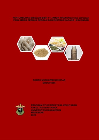 MUKHTAR, AHMAD MUSHAWIR (2025) PERTUMBUHAN MISELIUM BIBIT F1 JAMUR TIRAM (Pleurotus ostreatus) PADA MEDIA SERBUK GERGAJI DAN EKSTRAK KACANG - KACANGAN = Growth of F1 Spawn Mycelia of Oyster Mushroom (Pleurotus ostreatus) on Sawdust Media and Legume Extracts. Skripsi thesis, Universitas Hasanuddin.