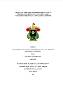 RAHMAN, MUH. FUAD AL FAROJ (2025) STRATEGI OPTIMALISASI PENANAMAN MODAL ASING DI INDONESIA MELALUI IK-CEPA (INDONESIA-KOREA COMPREHENSIVE ECONOMIC PARTNERSHIP AGREEMENT) = Optimization Strategy of Foreign Direct Investment in Indonesia through IK-CEPA (Indonesia-Korea Comprehensive Economic Partnership Agreement). Skripsi thesis, UNIVERSITAS HASANUDDIN.