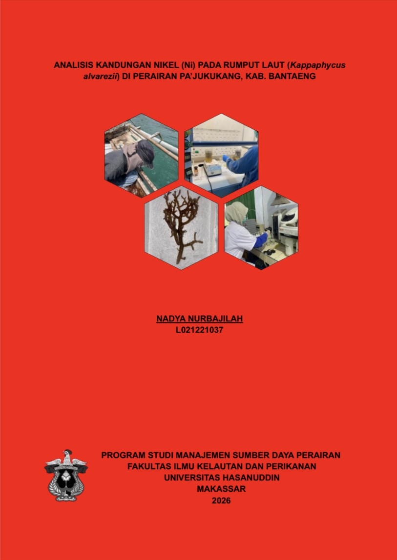 NURBAJILAH, NADYA (2026) Analisis Kandungan Nikel (Ni) Pada Rumput Laut (Kappaphycus alvarezii) di Perairan Pa’jukukang, Kab. Bantaeng = Analysis of Nickel (Ni) Content in Seaweed (Kappaphycus alvarezii) in Pa'jukukang Waters, Bantaeng Regency. Skripsi thesis, Universitas Hasanuddin.