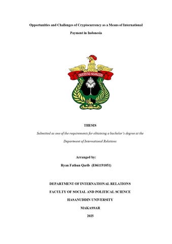 Qarib, Ryan Fathun (2026) PELUANG DAN TANTANGAN CRYPTOCURRENCY SEBAGAI ALAT PEMBAYARAN INTERNASIONAL DI INDONESIA = OPPORTUNITIES AND CHALLENGES OF CRYPTOCURRENCY AS A MEANS OF INTERNATIONAL PAYMENT IN INDONESIA. Skripsi thesis, Universitas Hasanuddin.