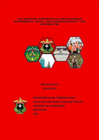 AULIA, DINI NUR (2026) COLLABORATIVE GOVERNANCE DALAM PELAKSANAAN ENVIRONMENTAL, SOCIAL, AND GOVERNANCE (ESG) PT. VALE INDONESIA TBK = COLLABORATIVE GOVERNANCE IN THE IMPLEMENTATION OF ENVIRONMENTAL, SOCIAL, AND GOVERNANCE (ESG) AT PT. VALE INDONESIA TBK. Skripsi thesis, Universitas Hasanuddin.