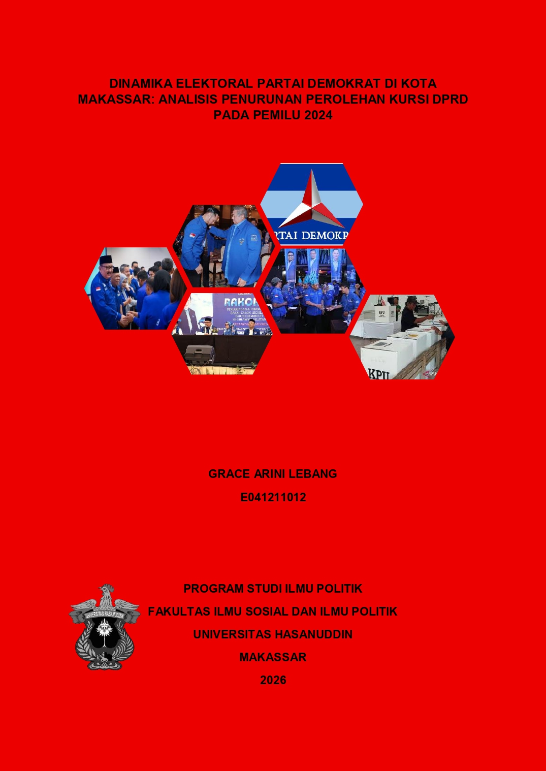 LEBANG, GRACE ARINI (2026) DINAMIKA ELEKTORAL PARTAI DEMOKRAT DI KOTA MAKASSAR: ANALISIS PENURUNAN PEROLEHAN KURSI DPRD PADA PEMILU 2024 =Electoral Dynamics of the Democratic Party in Makassar City: An Analysis of the Decline in DPRD Seat Acquisition in the 2024 General Election. Skripsi thesis, Universitas Hasanuddin.