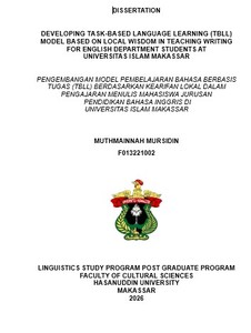 MURSIDIN, MUTHMAINNAH (2026) PENGEMBANGAN MODEL PEMBELAJARAN BAHASA BERBASIS TUGAS (TBLL) BERDASARKAN KEARIFAN LOKAL DALAM PENGAJARAN MENULIS MAHASISWA JURUSAN PENDIDIKAN BAHASA INGGRIS DI UNIVERSITAS ISLAM MAKASSAR = DEVELOPING TASK-BASED LANGUAGE LEARNING (TBLL) MODEL BASED ON LOCAL WISDOM IN TEACHING WRITING FOR ENGLISH DEPARTMENT STUDENTS AT UNIVERSITAS ISLAM MAKASSAR. Thesis thesis, Universitas Hasanuddin.