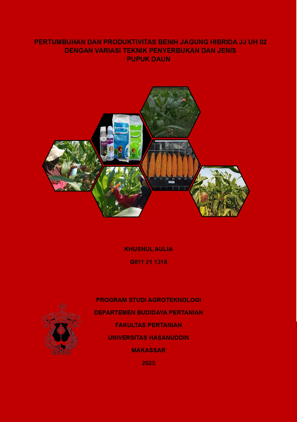 AULIA, KHUSNUL (2025) Pertumbuhan dan Produktivitas Benih Jagung Hibrida JJ UH 02 dengan Variasi Teknik Penyerbukan dan Jenis Pupuk Daun = Growth and Productivity of JJ UH 02 Hybrid Maize Seed with Various Pollination Techniques and Types of Foliar Fertilizers. Skripsi thesis, Universitas Hasanuddin.